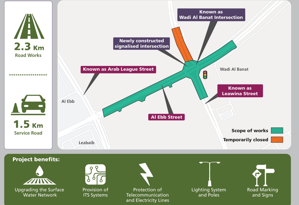 Doha: The Public Works Authority (Ashghal) announced the completion of construction works at Wadi Al-Banat Junction, as part of the Roads Improvement Works for Roads and Junctions in Various Areas of Greater Doha Project, Phase 7.