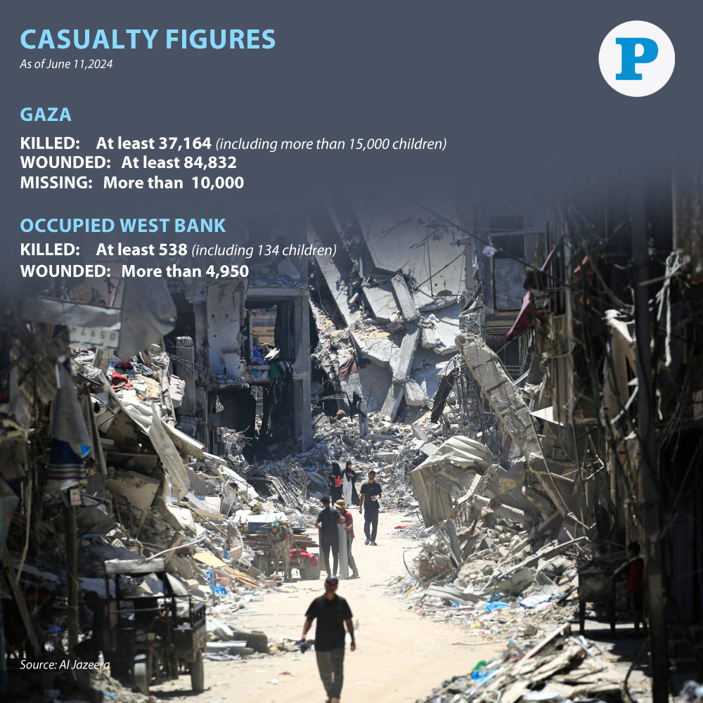 At least 37,164 people have been killed and 84,832 wounded in Israeli military attacks on Gaza since October 7, the enclave’s Health Ministry says.