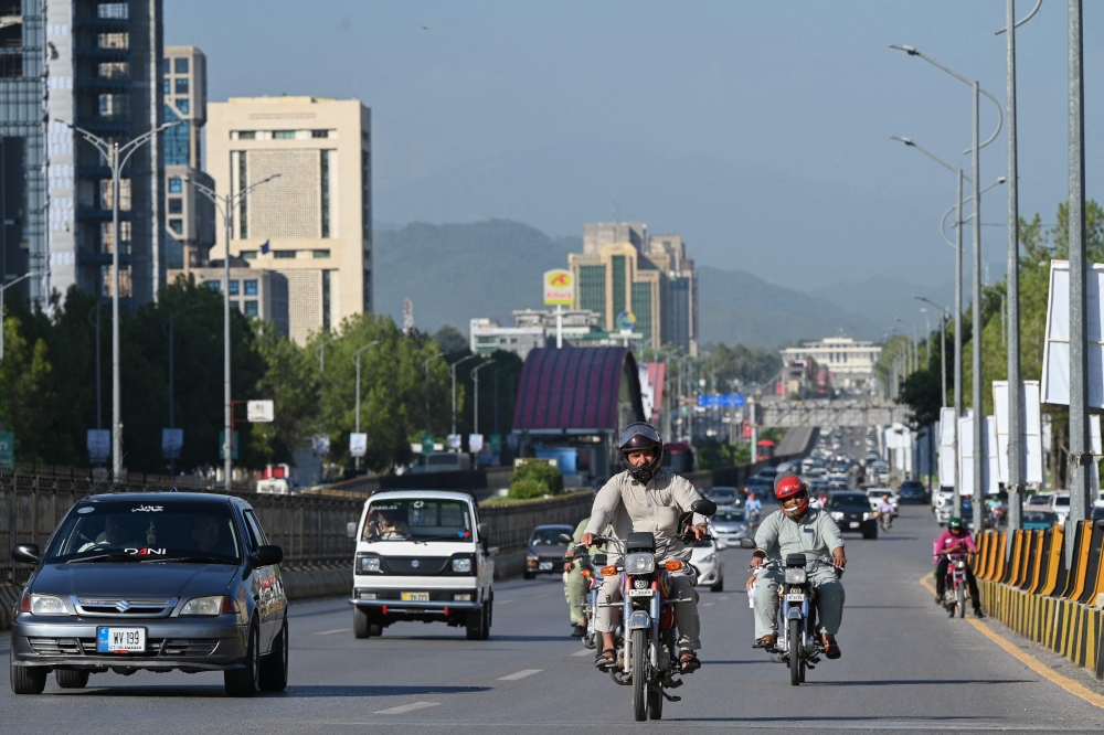 People commute on a road in Islamabad on July 11, 2023. (Photo by Farooq Naeem / AFP)