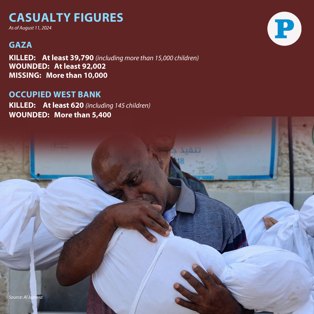 Israeli occupation forces have continued their aggression on the Gaza Strip by land, sea, and air since October 7, 2023, resulting in the martyrdom of 39,790 citizens, while thousands of victims remain trapped under the rubble and in the streets, with ambulance and civil defense teams unable to reach them.
