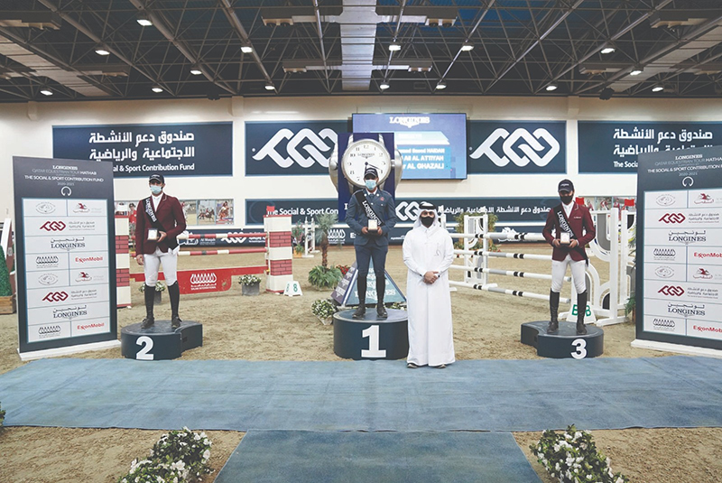 The top five was completed by Nasser Al Ghazali (What A Pleasure, 54.65 seconds, QR2,500) and Ghanim Nasser Al Qadi (Happy Tina, 55.05 seconds, QR1,750). Bader Al Darwish, Organizing Committee Member of Longines Qatar Equestrian Tour Hathab, gave away the prizes at the Open Class awards ceremony