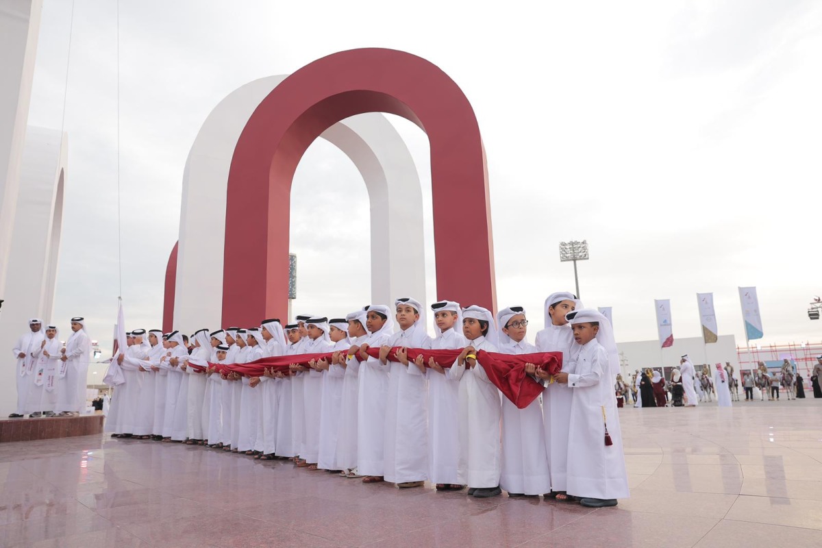 The flag was raised in the main square at Darb Al Saai to mark the start of the celebrations, accompanied by national songs. A Darb Al Saai parade was also held, featuring purebred Arabian horses, camels, and the traditional Qatari Ardah performance.