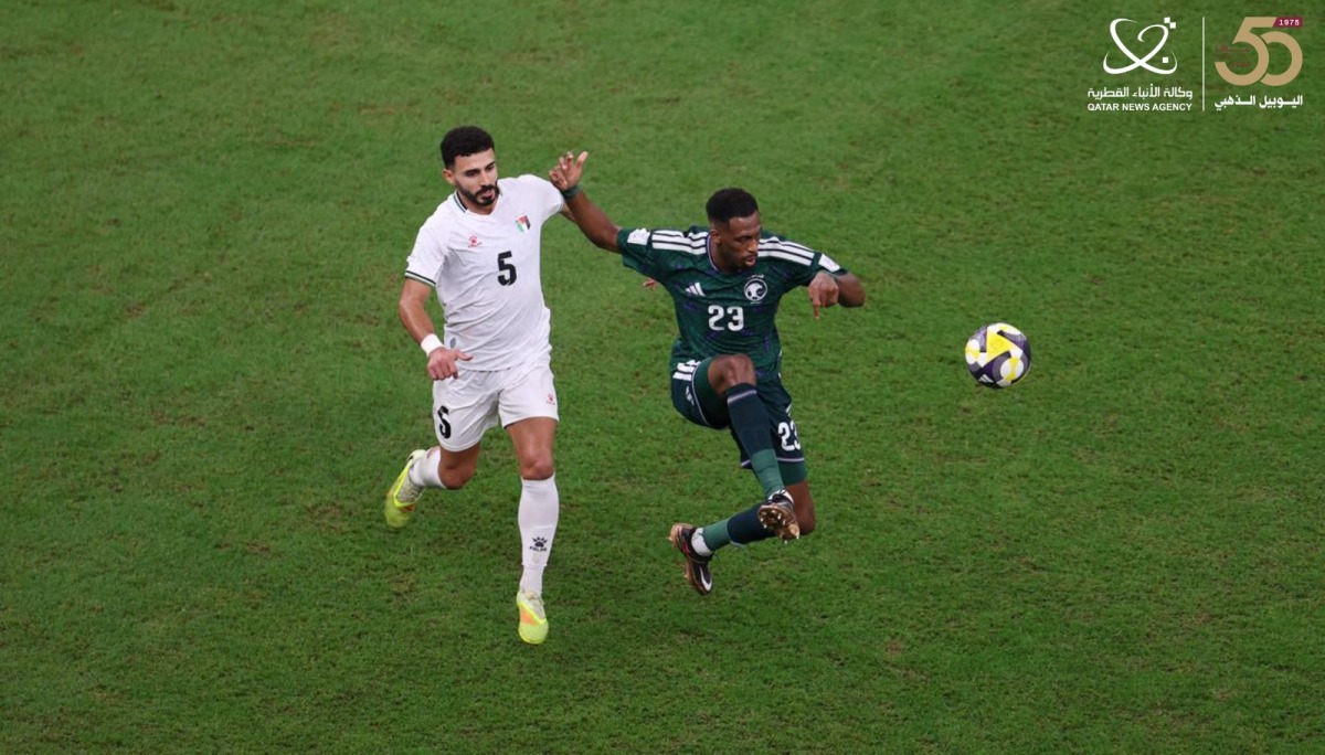 Musab Battat led the defensive effort for Palestine, repeatedly intercepting Saudi attacks in the final third.