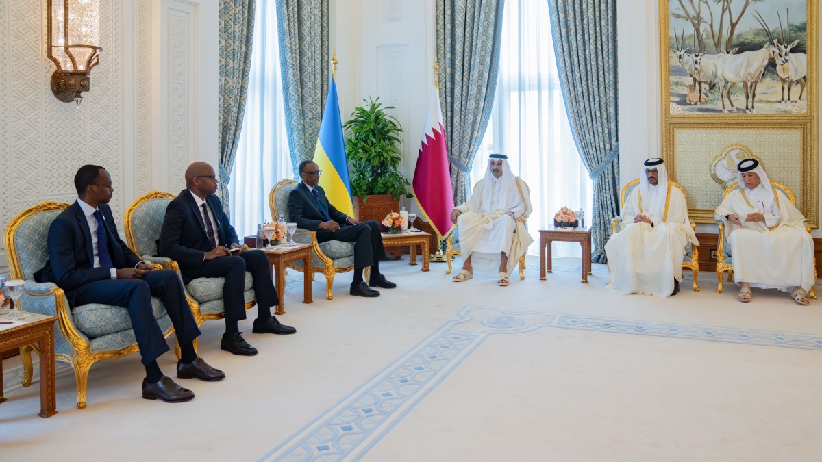 Doha, Qatar: The Amir HH Sheikh Tamim bin Hamad Al Thani met at the Amiri Diwan on Wednesday with President of the Republic of Rwanda HE Paul Kagame and his accompanying delegation.