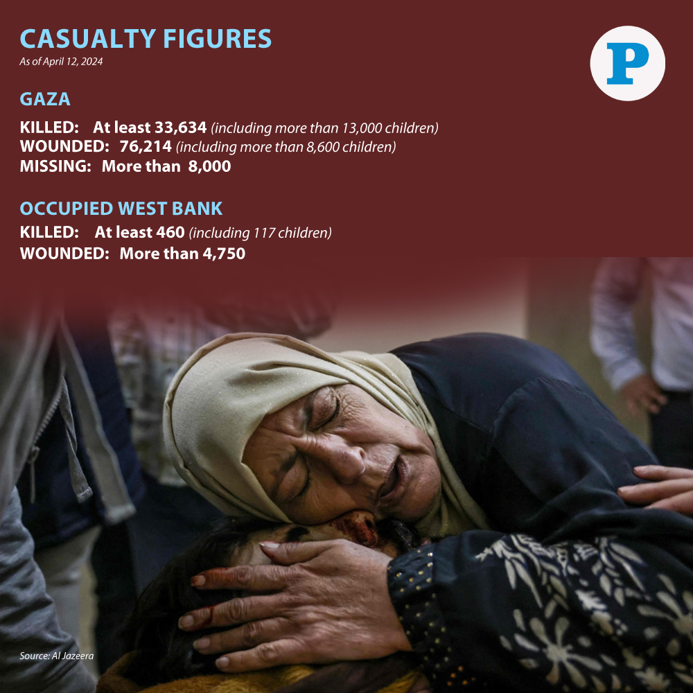 Gaza Strip, Palestinian Territories: The health ministry in Gaza said on Friday that at least 33,634 people have been killed in the territory during more than six months of war between Israel and Palestinian militants.