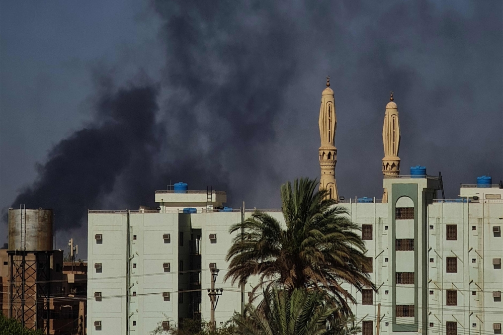 (FILES) Smoke billows above buildings in southern Khartoum amid ongoing fighting between the forces of two rival Sudanese generals, on May 16, 2023. (Photo by AFP)