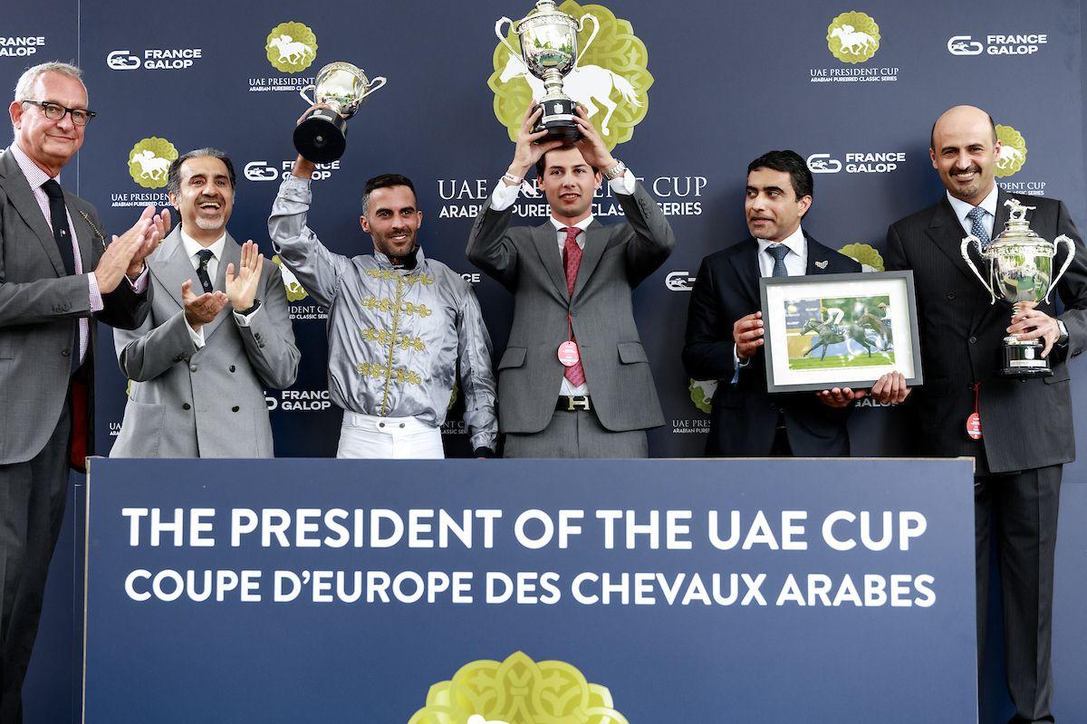 Doha, Qatar: Luwsail (Al Mourtajez) returned to Europe with a strong and determined performance to land the Gr.1 (PA) President of the UAE Cup – Coupe d’Europe des Chevaux Arabes at ParisLongchamp yesterday.