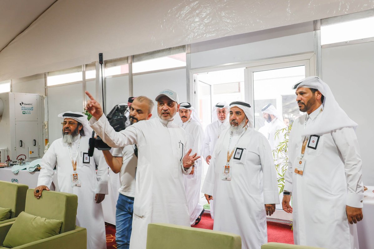 Accompanied by HE Consul General of the State of Qatar in Jeddah Rashid bin Saeed Al Khayarin, HE Al Ghanim scrutinized all the services and facilities provided by the camps in Mina and Arafat for the 19 Qatari pilgrimage campaigns.
