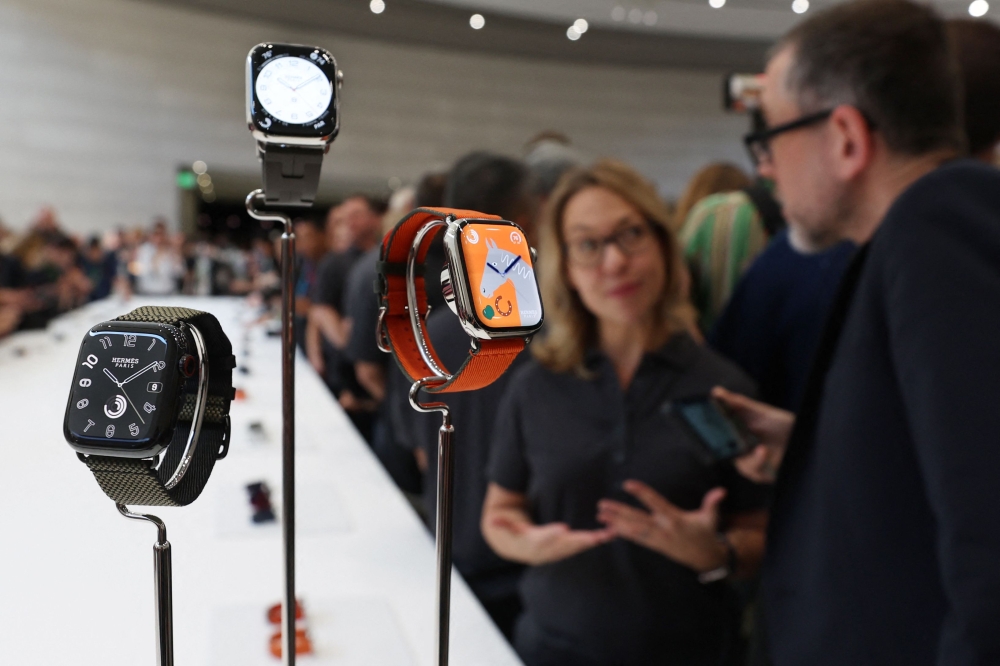 Attendees look at brand new Apple Watches during an Apple event on September 12, 2023 in Cupertino, California. (Photo by Justin Sullivan/Getty Images/AFP)