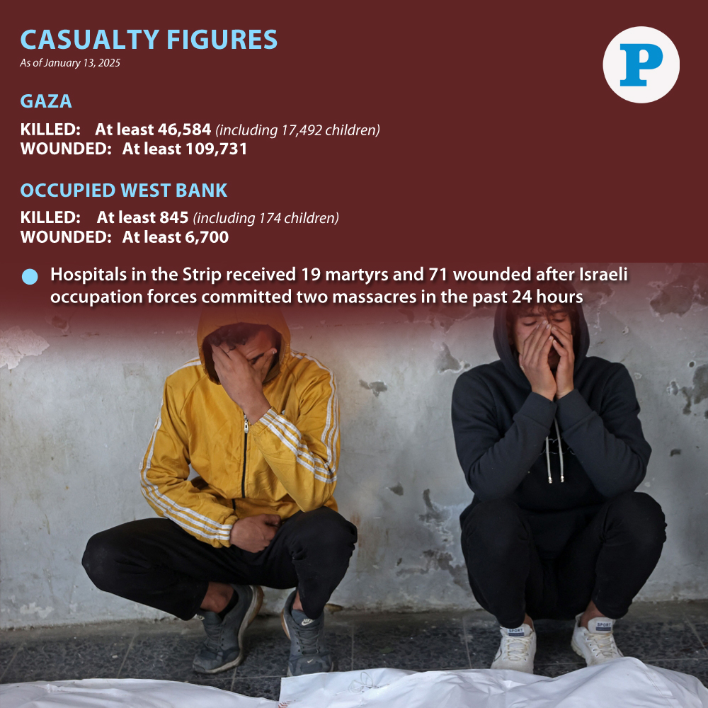 Gaza: At least 19 more civilians were slaughtered in two Israeli occupation massacres in the Gaza Strip, taking the death overall toll from the unabated genocide since October 2023 to 46,584.