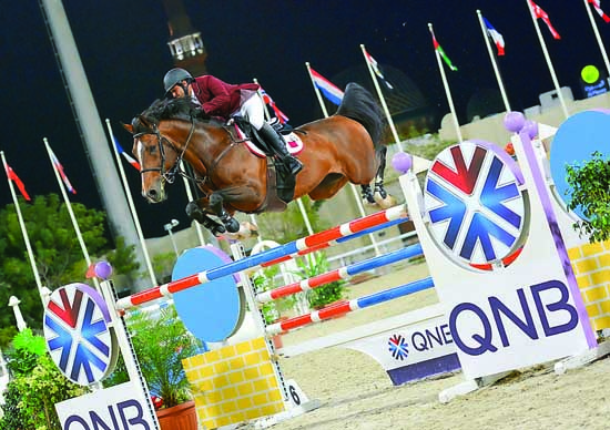 Action from the second leg of the QNB Doha Tour at the Main Arena of the Qatar Equestrian Federation (QEF) in Al Rayyan yesterday. Qatari rider Faleh Suwead Al Ajami guided Armstrong Van De Kapel to victory in the second leg while Saudi Arabia’s Abdullah Alsharbatly finished second followed by Qatar’s Ali Youseff Al Rumaihi.