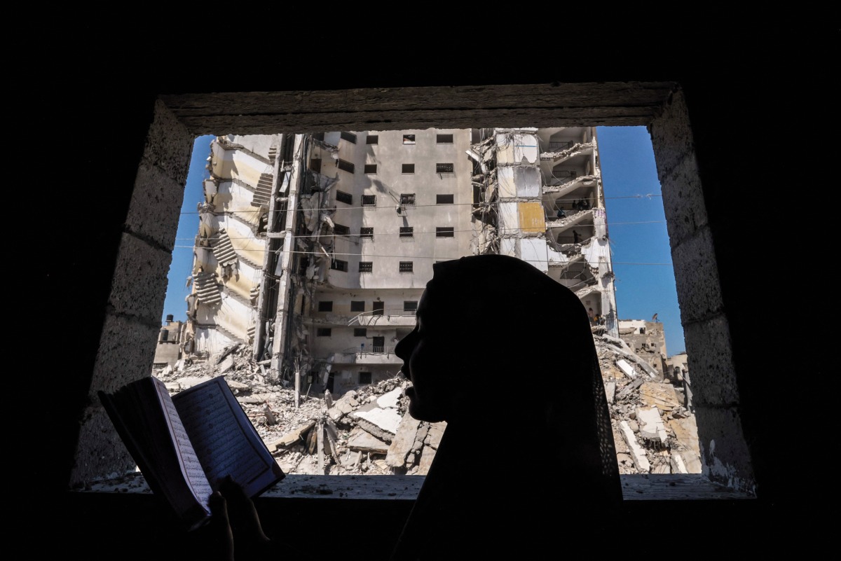 A Palestinian man walks through the rubble of a destroyed building due to Israeli bombardment in Rafah in the southern Gaza Strip on the second day of the Muslim holy fasting month of Ramadan on March 12, 2024. (Photo by MOHAMMED ABED / AFP)