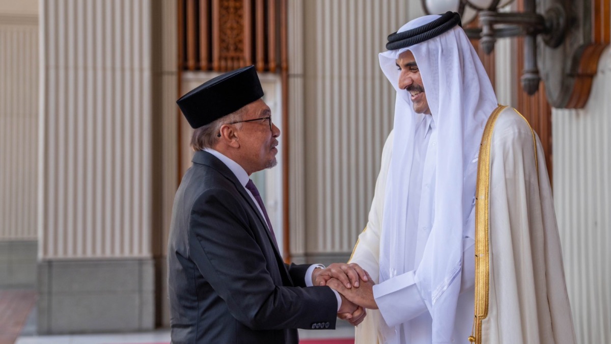 Doha, Qatar: The Amir HH Sheikh Tamim bin Hamad Al Thani held a session of official talks with the Prime Minister of Malaysia, HE Dr. Anwar Ibrahim, at the Amiri Diwan on Monday morning.