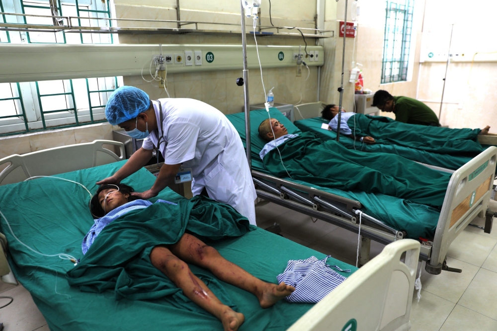 Picture taken by Vietnam News Agency (VNA) on July 13, 2024 shows medical staff tending to injured in a landslide in Ha Giang province. (Photo by Vietnam News Agency / AFP)