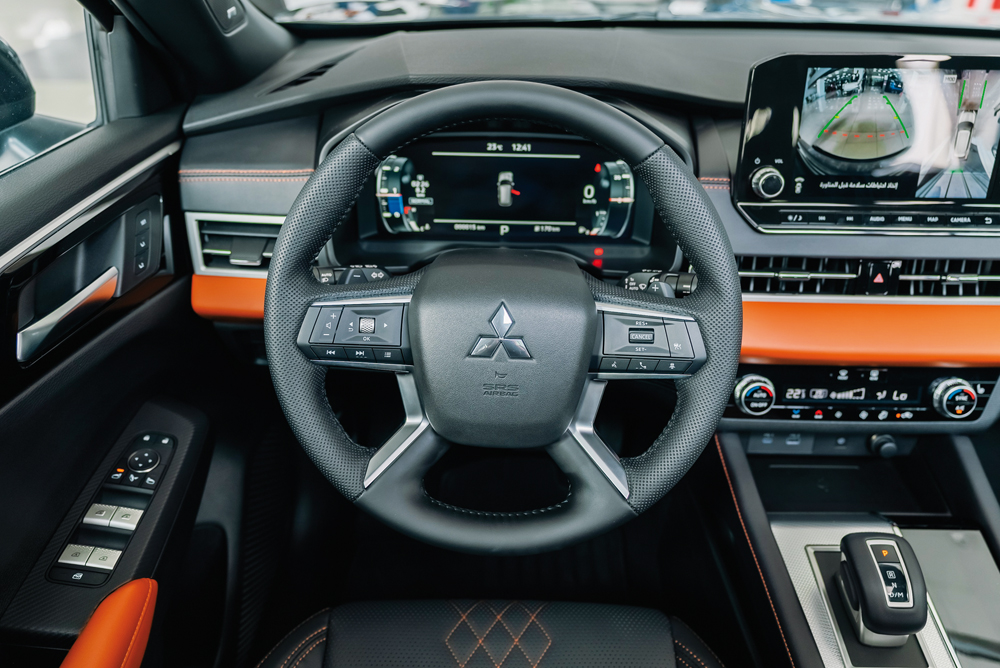 The Outlander’s exterior design portrays a confident and strong personality, achieved through the “Bold Stride” design concept. To express a bold aura and a sense of presence and stability, the strong, horizontal-themed proportion from front to rear, is contrasted with broad surface lines paired up by sharp edges and complemented with a large-diameter 20-inch alloy wheels and overhanging fenders that highlight the wide body. The front of the all-new Outlander enjoys Mitsubishi Motors’ distinctive next generation Dynamic Shield which aids in enhancing the vehicle’s front look, increasing protection, and improving performance. The sharp looking front combination lights which house daytime running lights and turn signals are positioned higher to provide better visibility for other drivers as well as pedestrians. On the contrary, the low-positioned head lights provide better distant lighting without impairing the vision of oncoming drivers.