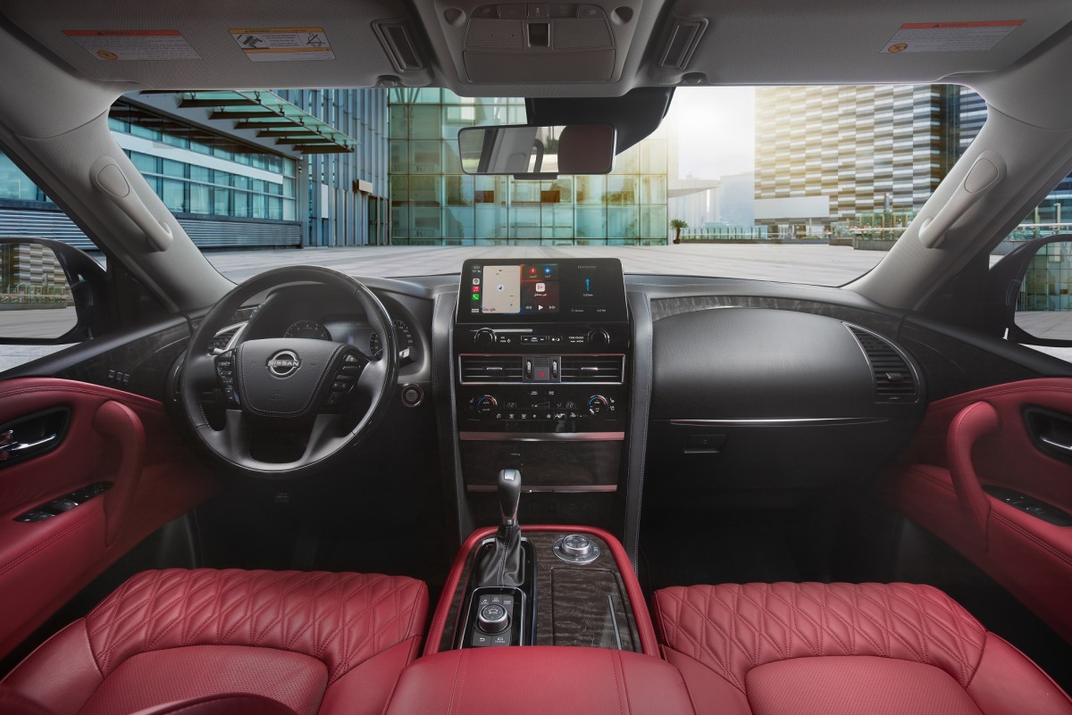 More luxurious and connected than ever before, the 2022 Patrol 70th Anniversary model sports a host of design and technological upgrades, and carries a distinctive badge on the fender, marking this achievement. A new V-Motion grille, redesigned bumpers, and new 20-inch machine cut alloy wheels differentiate the exclusive Patrol from its predecessors, as do the new burgundy interiors and redesigned centre console. An all-new 12.3-inch infotainment display along with upgraded wireless Apple CarPlay and Android Auto connectivity elevates the experience.