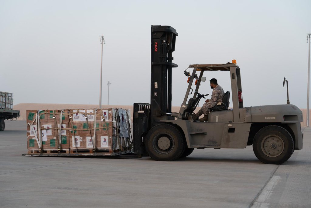 The aid includes food supplies, medical equipment, and shelter supplies, provided by the Qatar Fund for Development, and Qatar Red Crescent in preparation for transporting it to Gaza. This brings the total number of aircraft to 44, with a total of 1,464 tonnes of aid.