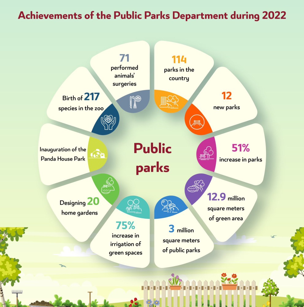 The areas of public parks reached 3 million sqm last year, said a report issued by the Ministry of Municipality on the achievements of its Public Parks Department in 2022.
