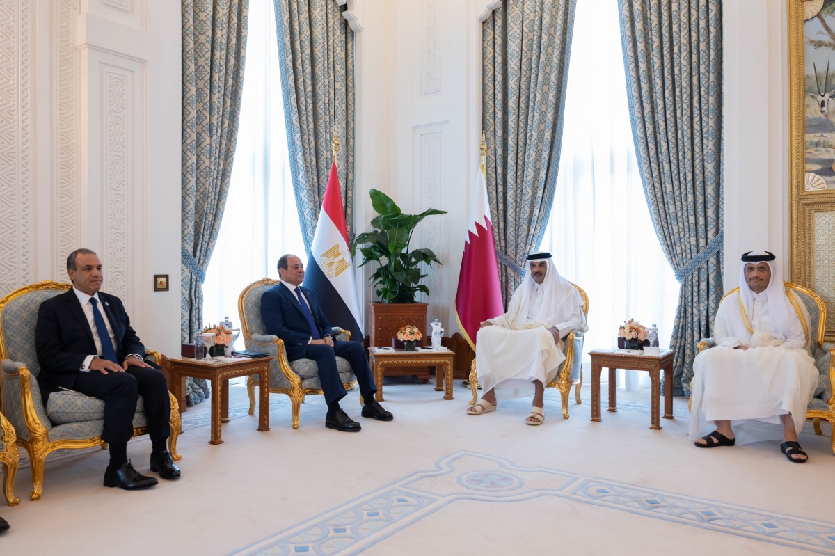 Doha, Qatar: The Amir His Highness Sheikh Tamim bin Hamad Al Thani and the President of the Arab Republic of Egypt HE Abdel Fattah El-Sisi held an official session of talks at the Amiri Diwan today.