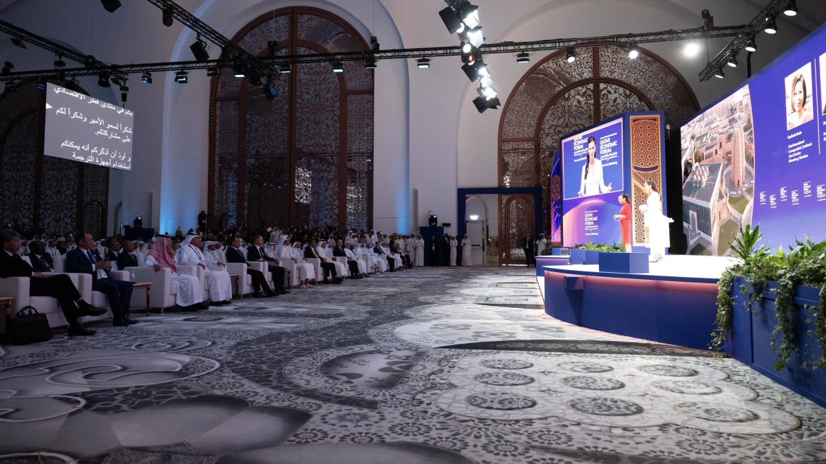 The opening was also attended by HE Sheikh Mohammed bin Abdulrahman bin Jassim Al Thani, Prime Minister and Minister of Foreign Affairs, HE Hassan bin Abdullah Al-Ghanim, Speaker of the Shura Council, and a number of Their Excellencies ministers, representatives of a number of brotherly and friendly countries, heads of diplomatic missions accredited to the state, and senior officials and parliamentarians, intellectuals, economists, businessmen, media figures, and representatives of regional and international organizations.