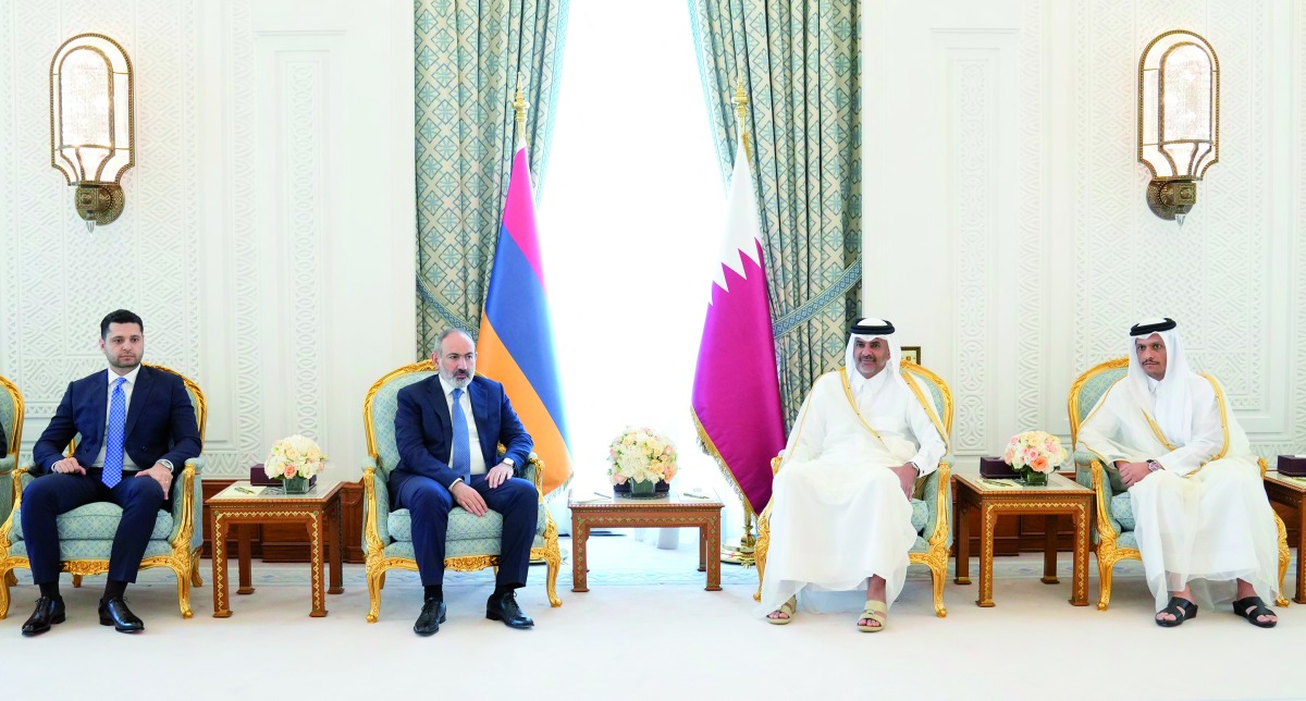 Doha: Prime Minister and Minister of Interior H E Sheikh Khalid bin Khalifa bin Abdulaziz Al Thani held yesterday an official talks session at the Amiri Diwan with Prime Minister of the Republic of Armenia H E Nikol Pashinyan.