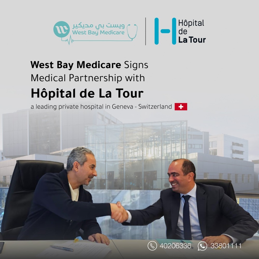 Mr Mehdi Bensouda, Chief Development Officer at Hôpital de la Tour, expressed his enthusiasm for the partnership, saying, “We are excited to extend our healthcare services to the residents of Qatar in partnership with West Bay Medicare. Our hospital in Switzerland is equipped with state-of-the-art facilities and a team of highly skilled medical professionals who are dedicated to providing excellent patient care. Through this partnership, we hope to contribute positively to the healthcare landscape in Qatar and offer patients access to world-class medical treatments.”