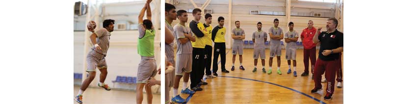 Qatar coach Gomez Julian talks to his players during a training session in Yekaterinburg, Russia, at the 2015 IHF Men’s Youth World Championship being held from August 7 to 20. Qatar will take on Russia today in their fifth Group C clash. Qatar have won two and lost as many games so far.PICTURES: SYED BASHEERUDDIN