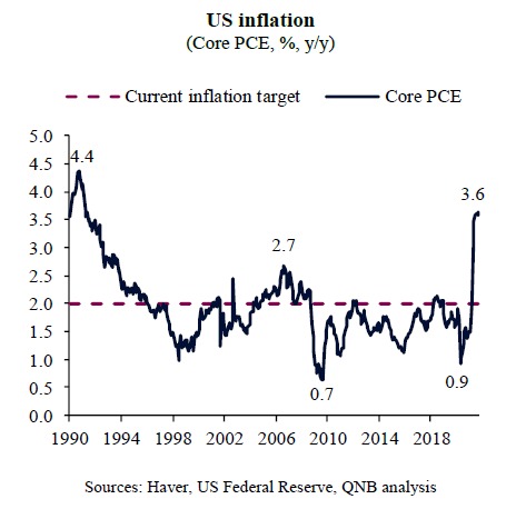 Doha: The combination of robust demand growth with pandemic-related supply constraints for goods and services has led to a significant rise in consumer prices. The US core personal consumption expenditures price index (PCE), the US Federal Reserve’s (Fed) favourite gauge for inflation, spiked 3.6% year-on-year (y/y), a level not seen in decades.