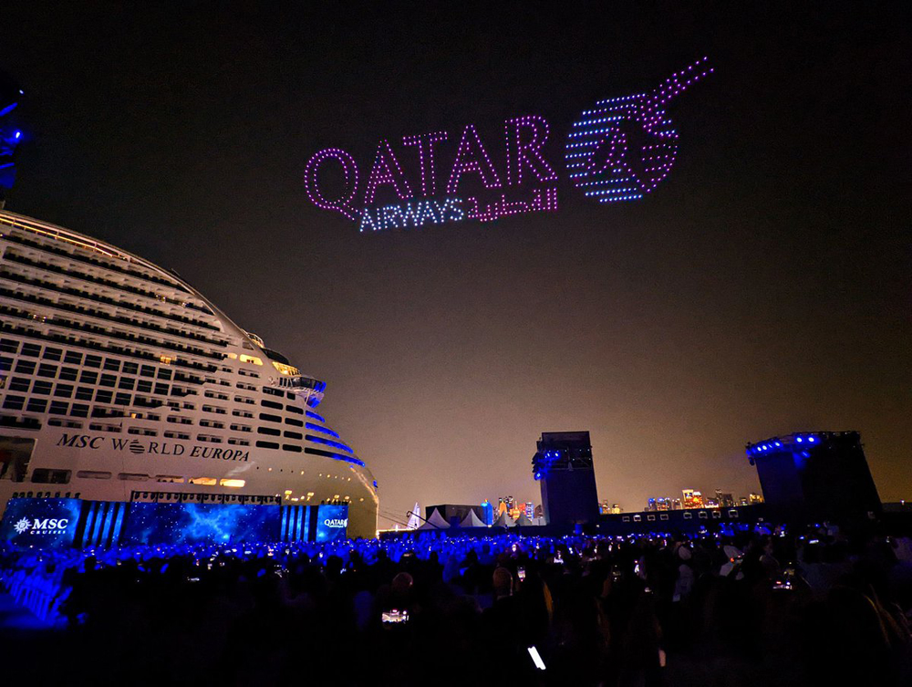 A drone display during the naming ceremony of the MSC World Europa cruise ship at Doha Port yesterday.