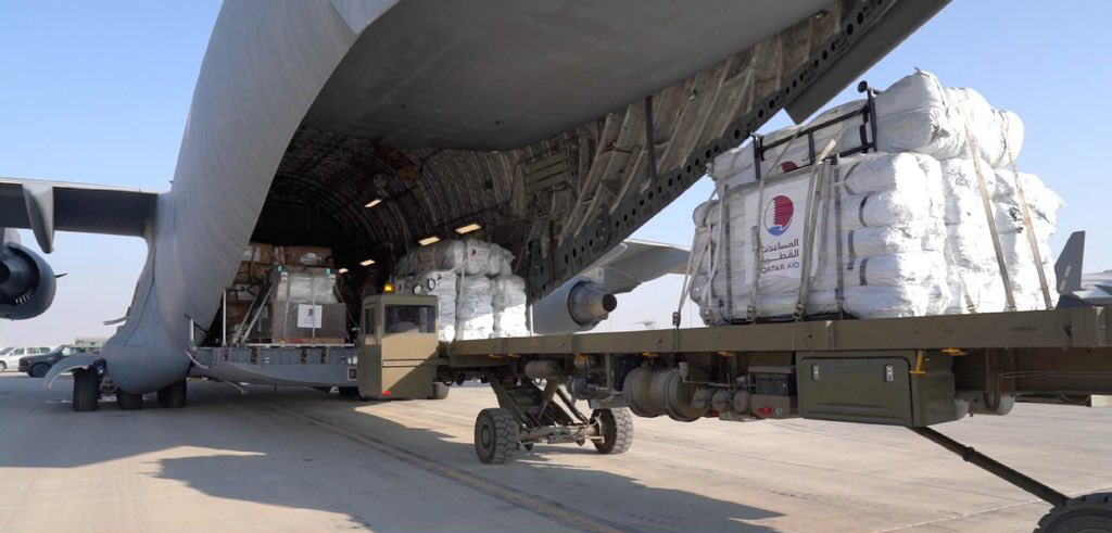 The aid is part of the State of Qatar's full support to the brotherly Palestinian people amid the difficult humanitarian conditions due to the Israeli bombardment of Gaza Strip.