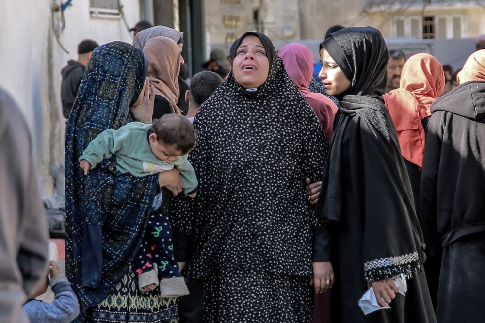 Palestinian women mourn their relatives killed in Israeli bombardment in front of the morgue of the Al-Shifa hospital in Gaza City on March 15, 2024, amid the ongoing conflict between Israel and the Palestinian Hamas movement. (Photo by AFP)