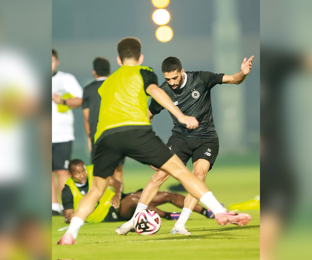 Al Sadd veteran Hassan Al Haydos in action with a teammate during a training session ahead of Qatar SC match.