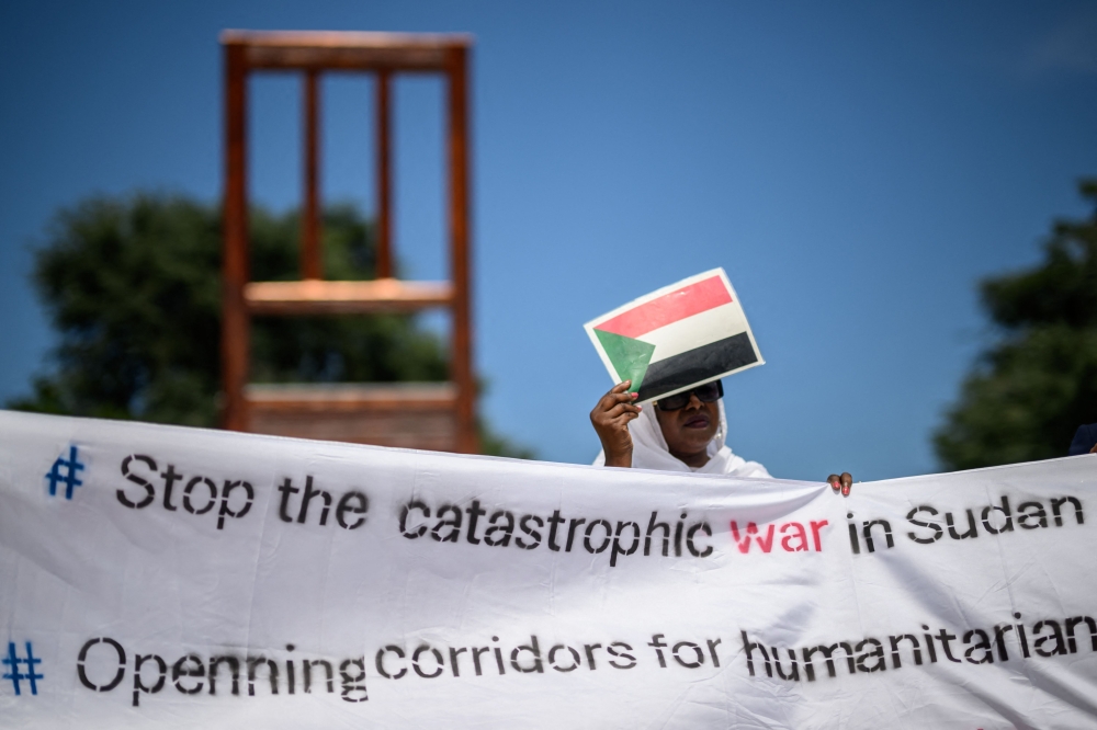 Around a hundred demonstrators gathered outside the UN headquarters in Geneva, chanting: "Action for Sudan" and holding a banner reading "Stop the catastrophic war".