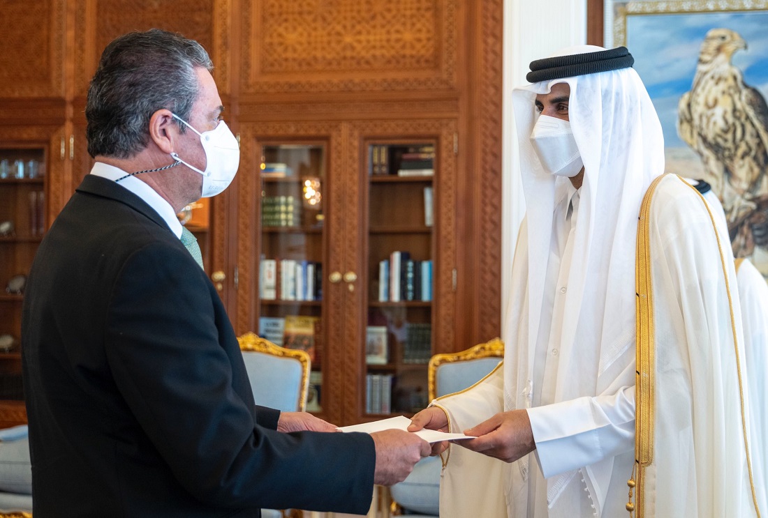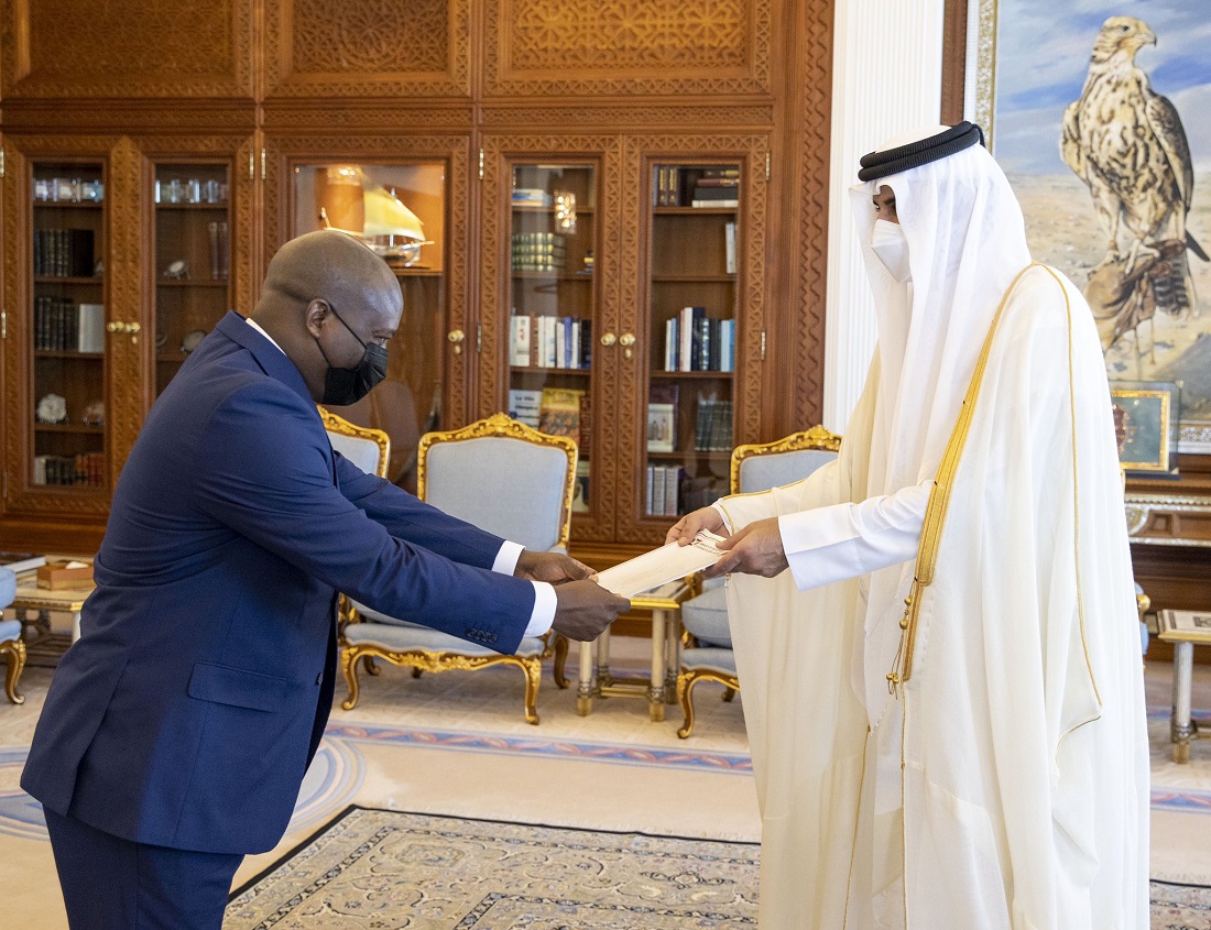 Doha: The Amir HH Sheikh Tamim bin Hamad Al-Thani received at the Amiri Diwan office on Monday morning the credentials of seven new ambassadors to the State of Qatar.
