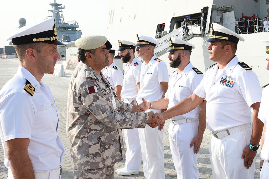 Doha: The Qatari Amiri Naval Forces received the Italian Paolo Thaon di Revel vessel at Umm Al Houl naval base. The arrival of the vessel comes within the framework of the cooperation agreements signed by the Ministry of Defence with the brotherly and friendly forces in pursuit of securing the FIFA World Cup Qatar 2022 tournament.