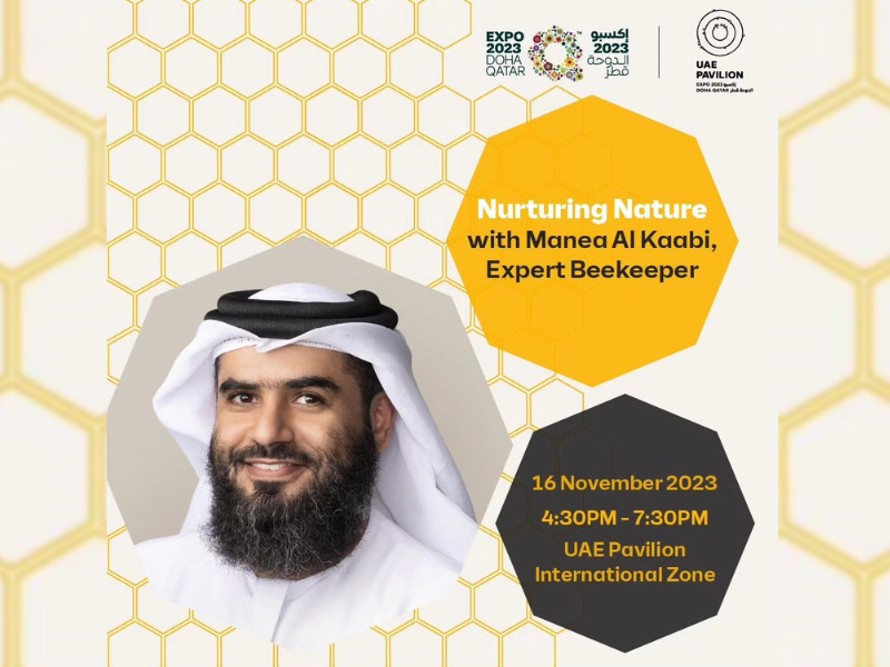 Beekeeping experience and interesting conversations await you with Manea Al Kaabi at the Expo. Explore the world of bees and discover the vital role bees play in enhancing food security and biodiversity. Discussion will be conducted in Arabic, open to the public.