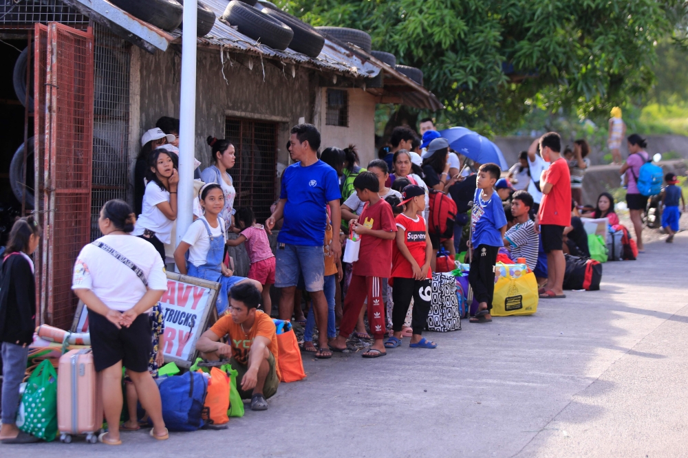 Residents wait for a ride along the road after the local government implemented a preemptive evacuation in Legazpi, Albay on November 15, 2024, ahead of the landfall of Typhoon Man-Yi.