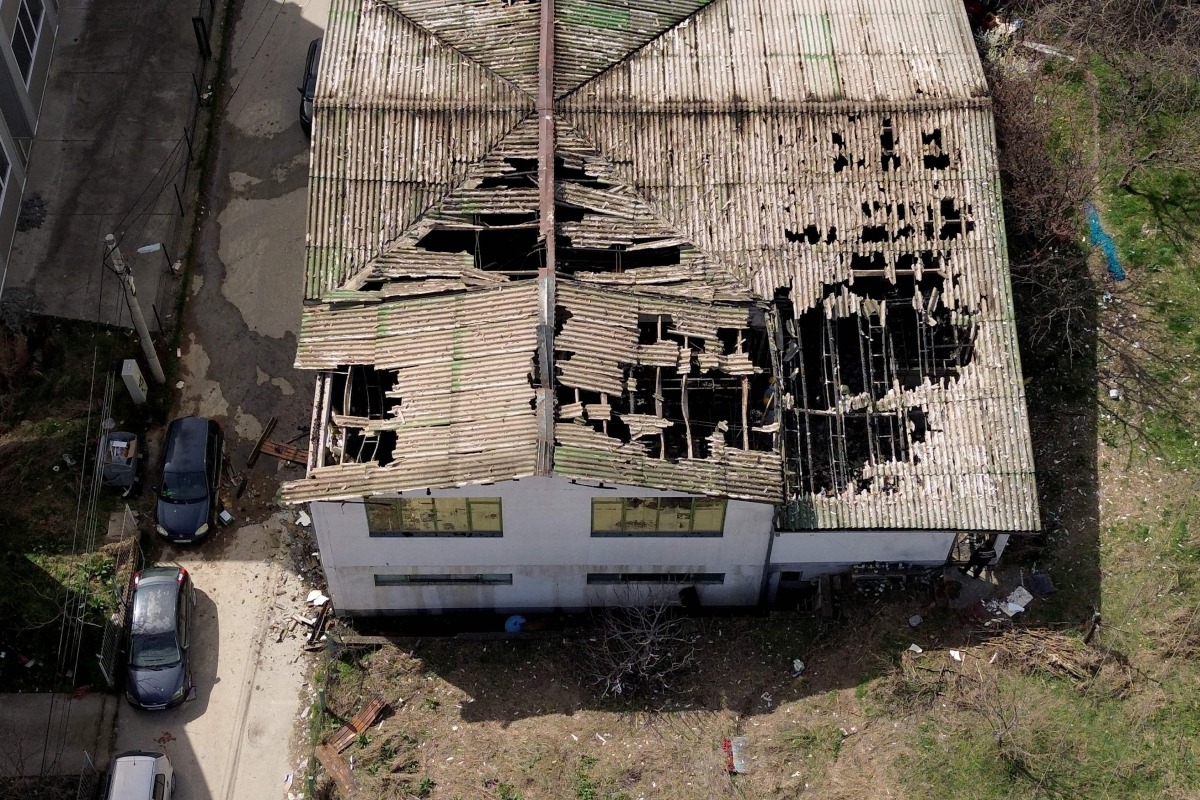 This aerial photograph shows a view of the burnt down establishment in which revellers died, in Kocani, a town some 100 kilometres east of the capital Skopje, on March 16, 2025.Photo by Stringer/ AFP