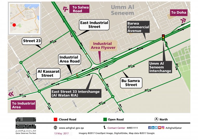 The flyover forms a key component of the new East Street 33 Interchange, a grade-separated interchange that will replace the former Al Watan Roundabout and enable free-flowing movement between Salwa Road, the Industrial Area, Industrial Area Road and East Industrial Street. The interchange is expected to be complete in June.