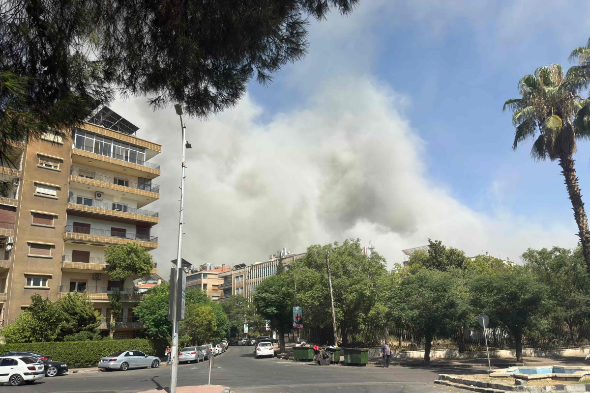 Smoke billows following Israeli strikes near the Syrian army and defence ministry headquarters in Damascus on July 16, 2025. (Photo by Rami al SAYED / AFP)
