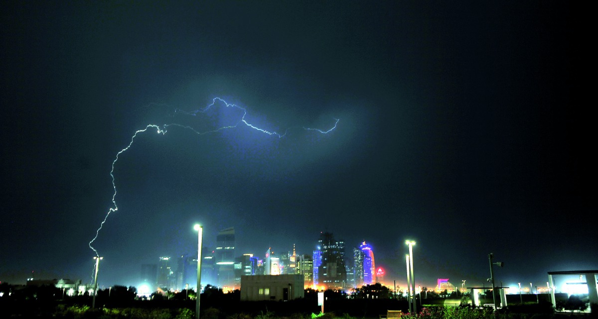 A lightning strike seen over Doha skyline yesterday. Pic: Salim Matramkot / The Peninsula
