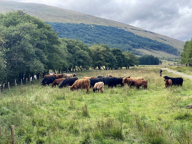 Grazing Highland cattle and verdant hills are a familiar scene along the West Highland Way. Photo for The Washington Post by Kathryn Streeter