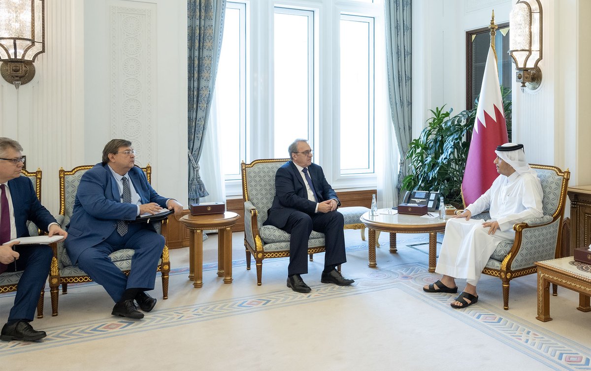 Doha, Qatar: Prime Minister and Minister of Foreign Affairs HE Sheikh Mohammed bin Abdulrahman bin Jassim Al-Thani met on Monday in his office at the Amiri Diwan with the Deputy Minister of Foreign Affairs of Russia and Special Representative of the President of Russia for the Middle East and African Countries HE Mikhail Bogdanov and his accompanying delegation, on the occasion of their visit to the country.