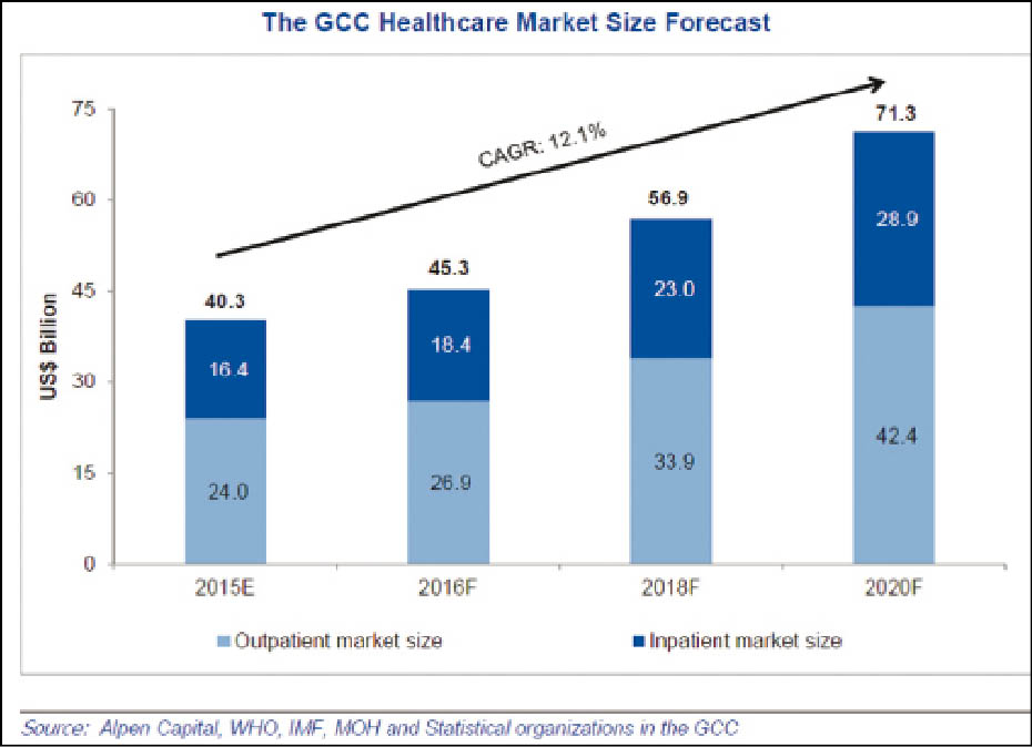 “Development of the healthcare sector has taken a center stage in the GCC countries, as they witness an era of demographic transition accompanied by rising prevalence of lifestyle-related diseases. In order to ease the growing pressure on the healthcare system, the GCC governments are injecting huge funds as well as encouraging private sector participation to build hospitals and clinics, upgrade the existing infrastructure, and match the quality of services offered in developed countries,” said Sameena Ahmad, Managing Director, Alpen Capital (ME) Ltd.