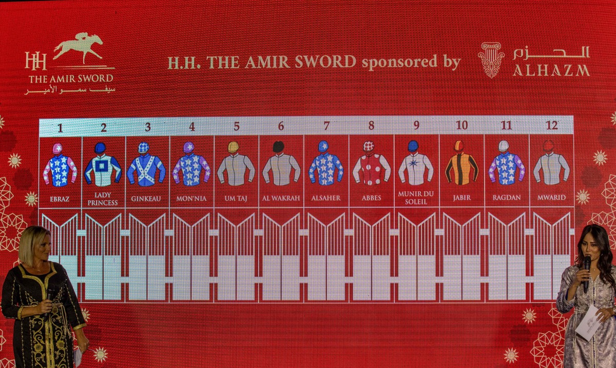 The final line-up for the feature event of the HH The Amir Sword Festival, (Gr1 PA) - Purebred Arabian (3rd leg of the Triple Crown) is on display.