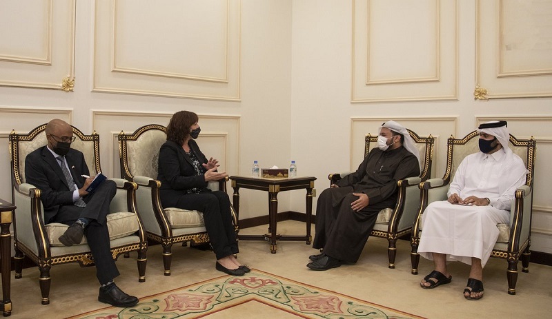 Doha - Assistant Foreign Minister for Regional Affairs HE Dr. Mohammed bin Abdulaziz bin Saleh Al Khulaifi met separately on Thursday with Ambassador of the French Republic HE Jean-Baptiste Faivre, Ambassador of Canada HE Stefanie McCollum, Ambassador of the Republic of Korea HE Lee Joon-Ho, Ambassador of the Federal Republic of Germany HE Claudius Fischbach, Ambassador of the Italian Republic HE Alessandro Prunas, Ambassador of the Republic of Turkey HE Dr. Mehmet Mustafa Goksu, Ambassador of the Kingdom of the Netherlands HE Marjan Kamstra, and Charge d'Affairs at the Embassy of the United Kingdom Alexandra Pamela Cole.
