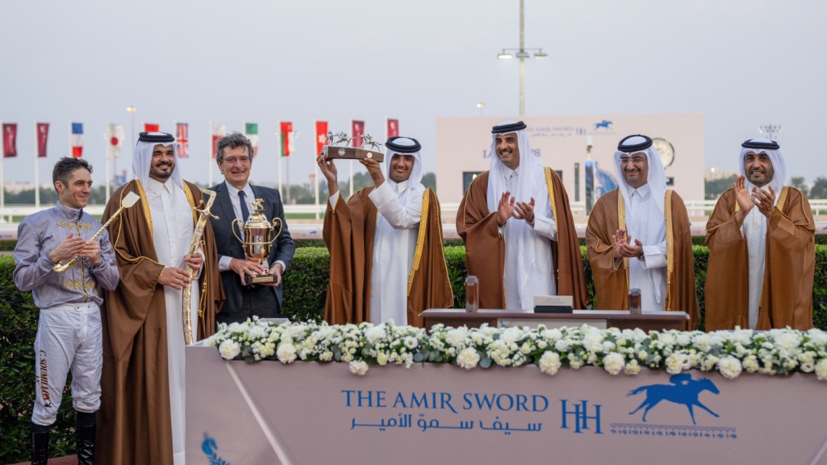 HH the Amir crowned Abdulrahman bin Fahd Al Attiyah with HH the Amir Silver Sword - Purebred Arabian (4yo Only) (Class 1) after Molfit (FR) secured the 1850m sixth race, and awarded Abdulatif Zainal Al Emadi with HH the Amir Shalfa after Pazeer colt finished first in the fifth Thoroughbred Open Handicap (4yo and up) (Class 2), for a 2000m contest.