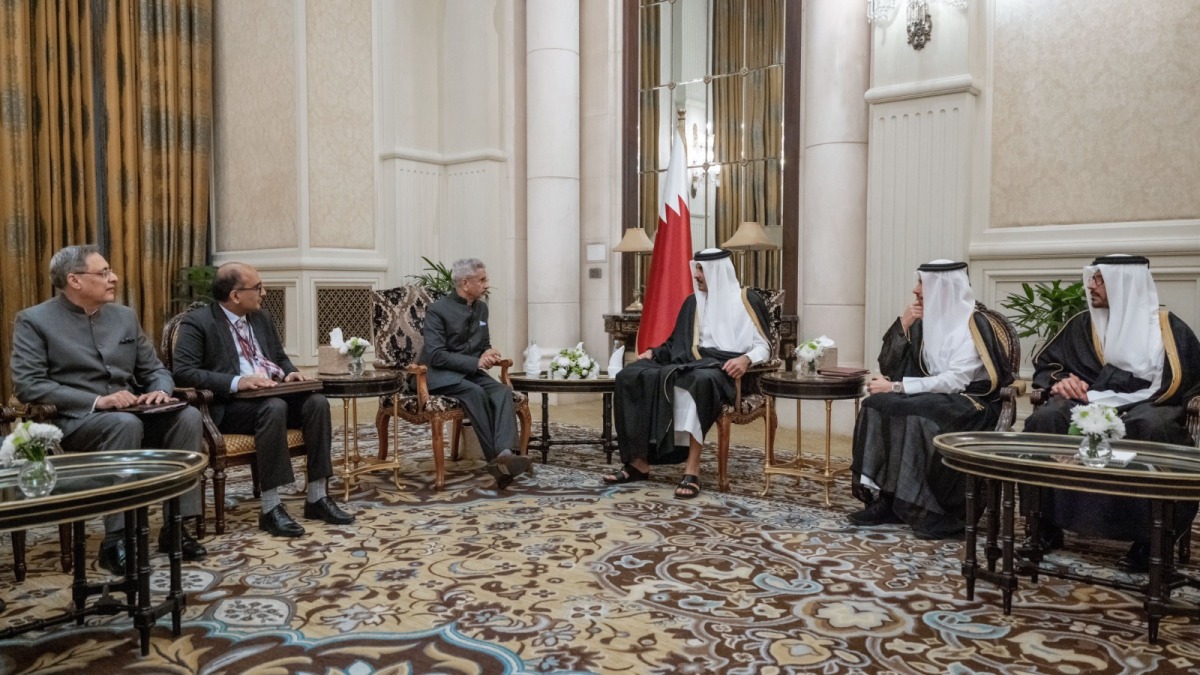 New Delhi: The Amir HH Sheikh Tamim bin Hamad Al Thani received the Minister of External Affairs of the Republic of India HE Dr. Subrahmanyam Jaishankar, and his accompanying delegation, today at His Highness's residence in the capital New Delhi.