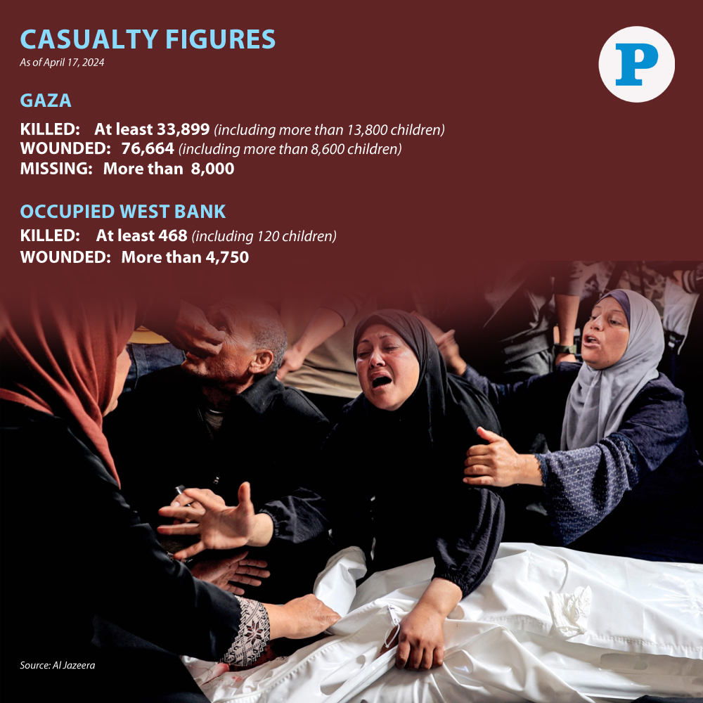 The number of martyrs as a result of the ongoing aggression on the Gaza Strip for the 194th consecutive day rose to at least 33,899, while the injuries have exceeded 76,660.