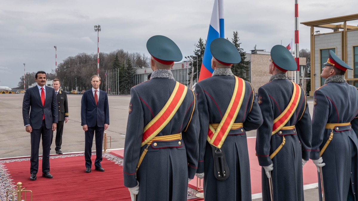 Moscow: The Amir HH Sheikh Tamim bin Hamad Al Thani arrived Thursday in Moscow on an official visit to the friendly Russian Federation.